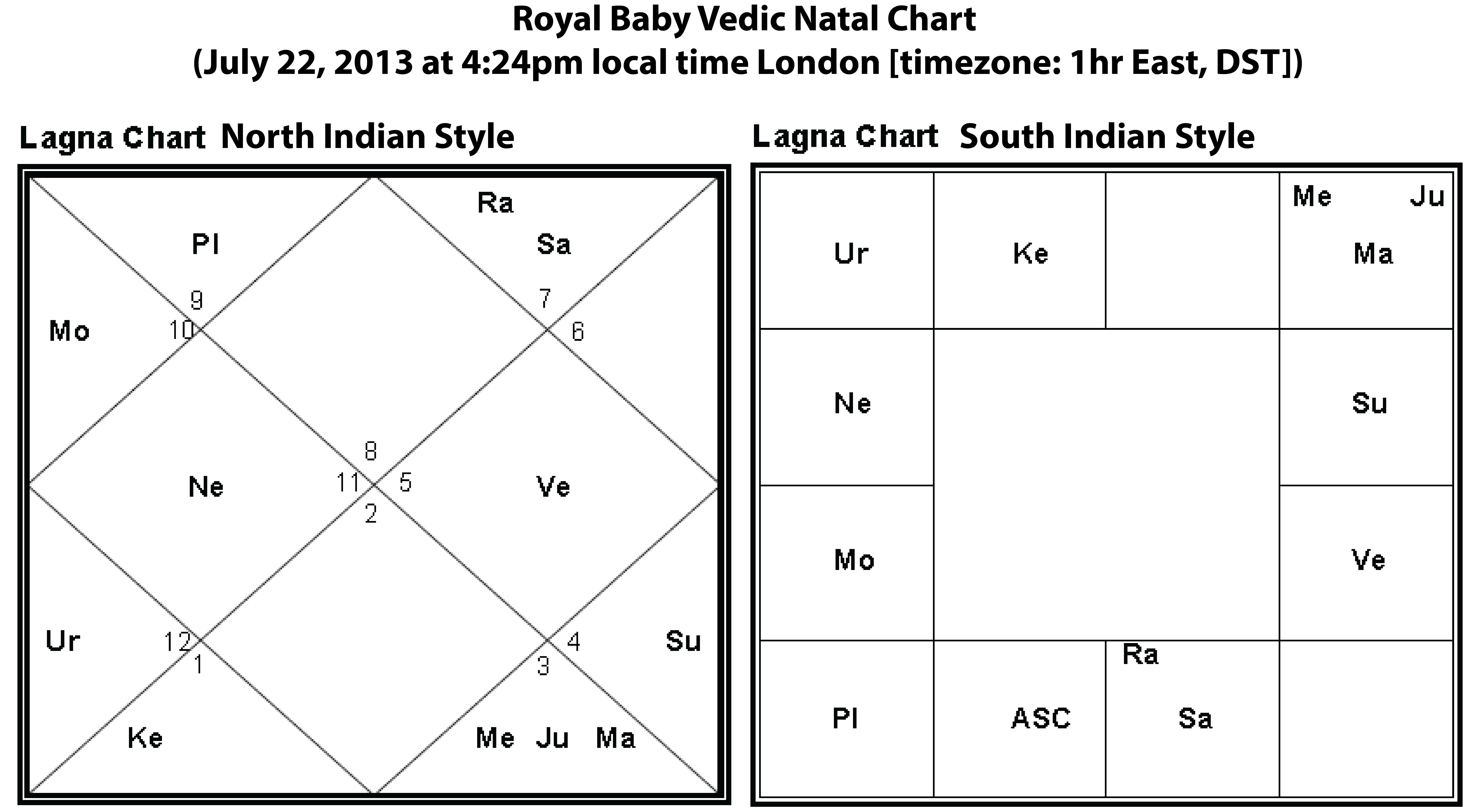 British royal baby Vedic astrology chart & report (South Indian style) 07.22.13 at 4:24pm London